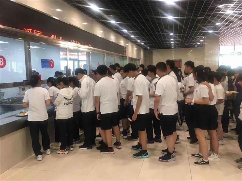 德育处和班主任一块讨论,解决食堂就餐的相关问题。然后班主任带队,有序就餐。